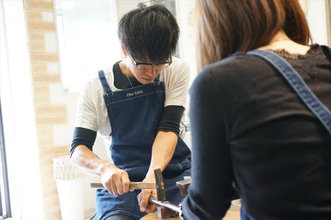 ご予約を頂いていた大村市のNさまカップルによる結婚指輪手作り体験が行われました。