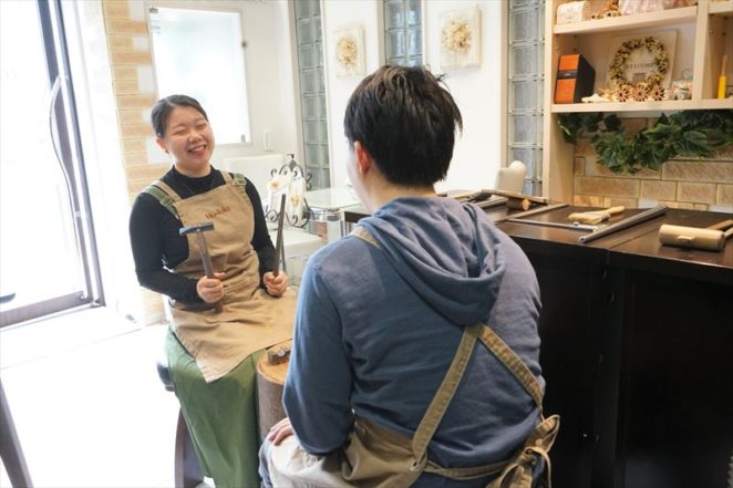 事前来店の上でご予約を頂いていた、五島市のEさまカップルによる結婚指輪手作り体験が
