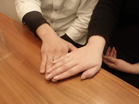 お互いの指輪を制作されたので、サイズの大きい男性の指輪を作る女性が
