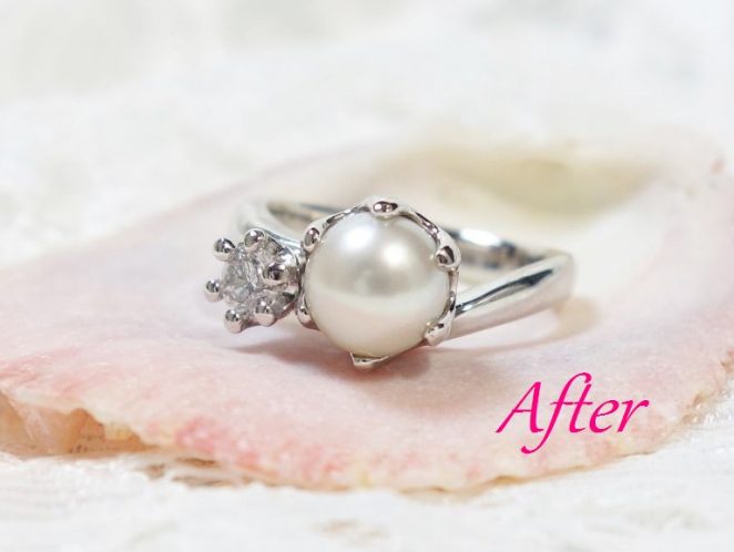 ジュエリー(真珠&ダイヤモンド)リフォーム 長崎市・KU様 「所有している真珠ルースと愛用のダイアネックレスを使って 嫁ぐ娘へ一生モノのリングとピアスを贈りたい」というご依頼を受け オーダーメイドで制作させて頂きました。 二つの作品に共通するのはミルクの波紋をモチーフしたミルククラウン。 可愛らしいお嬢さまの雰囲気にピッタリのキュートなジュエリーへと 生まれ変わりました。