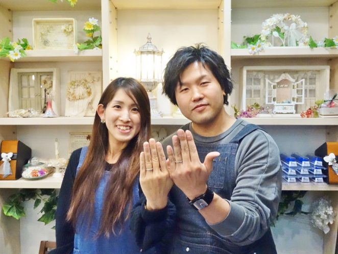 ゼクシィアプリでショップを知りました。 アプリを見て「いいな~♪」と思って来店したので不安はなかったです。楽しみでした!! 自分たちで指輪を作れると聞き、とても興味を持って作らせて頂きました。 デザインもたくさんあり迷いましたが、自分たちらしい世界にひとつの指輪ができ、 とても良かったです。 製作中は店長さんと職人さんと楽しく会話しながらできて、とても楽しかったです。 いろいろアドバイスなどもしてくれたり、手伝ってもらい、ありがとうございました♡ 一生大切にします♡